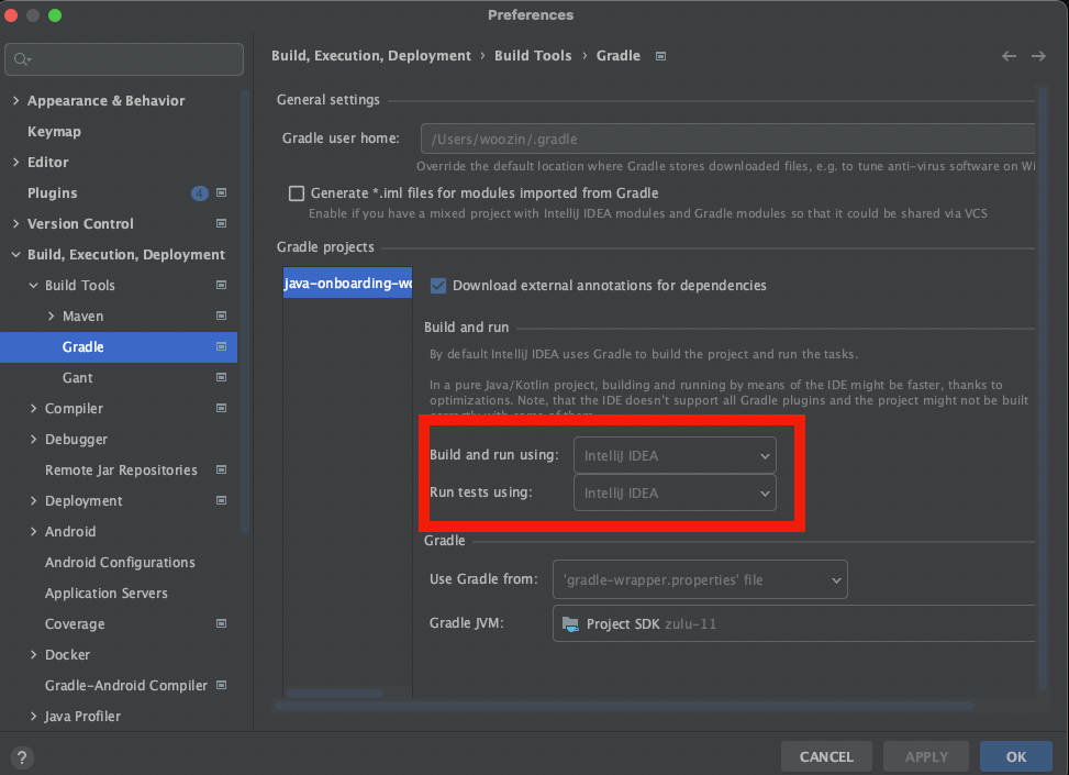 mac기준, 아래와 같이 IntelliJ 설정을 변경하면 된다.