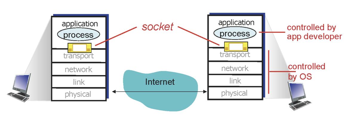 - 양단을 연결하려면 주소가 특정되어야 함 → IP(컴퓨터 특정) + Port(프로세스에 물린 소켓 특정)의 조합으로 특정