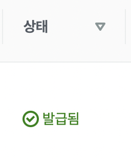 상태가 발급됨으로 변경된 것을 확인하실 수 있습니다.