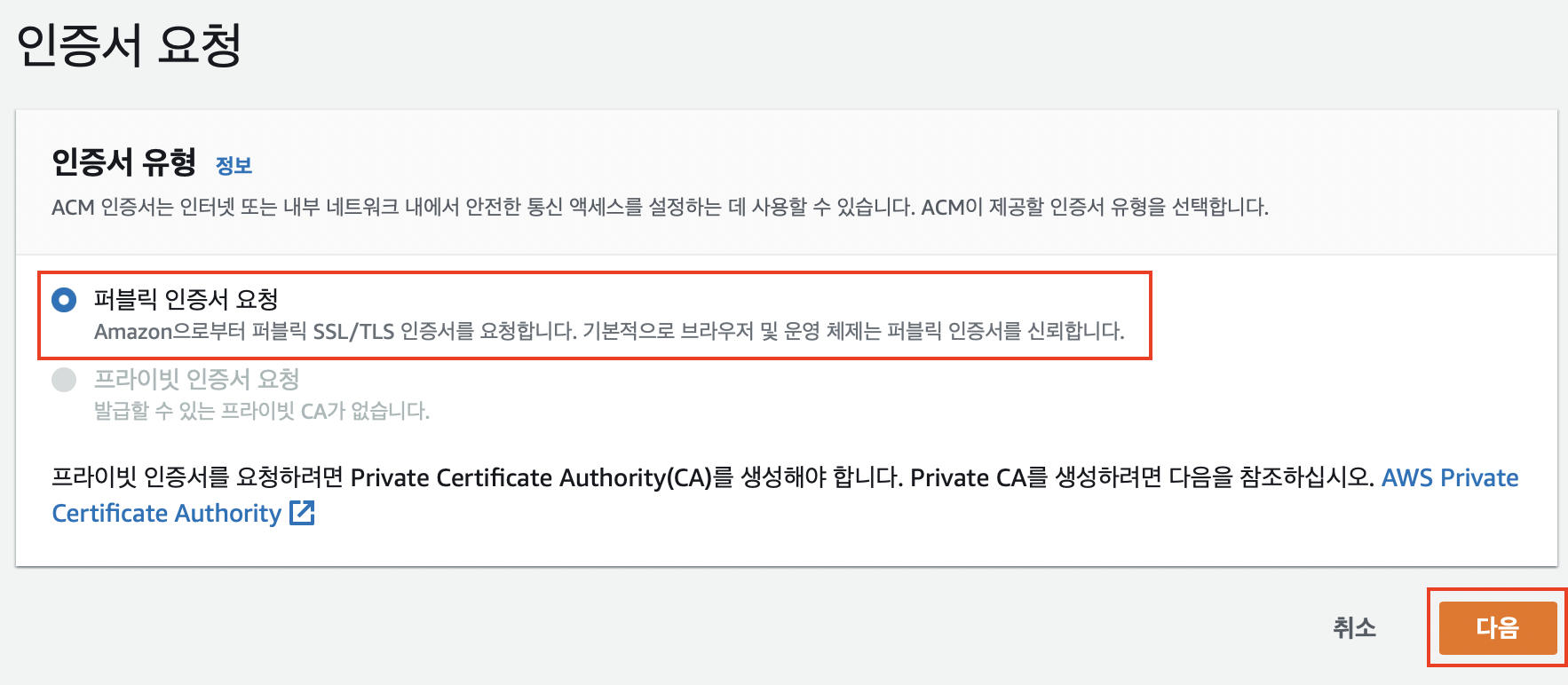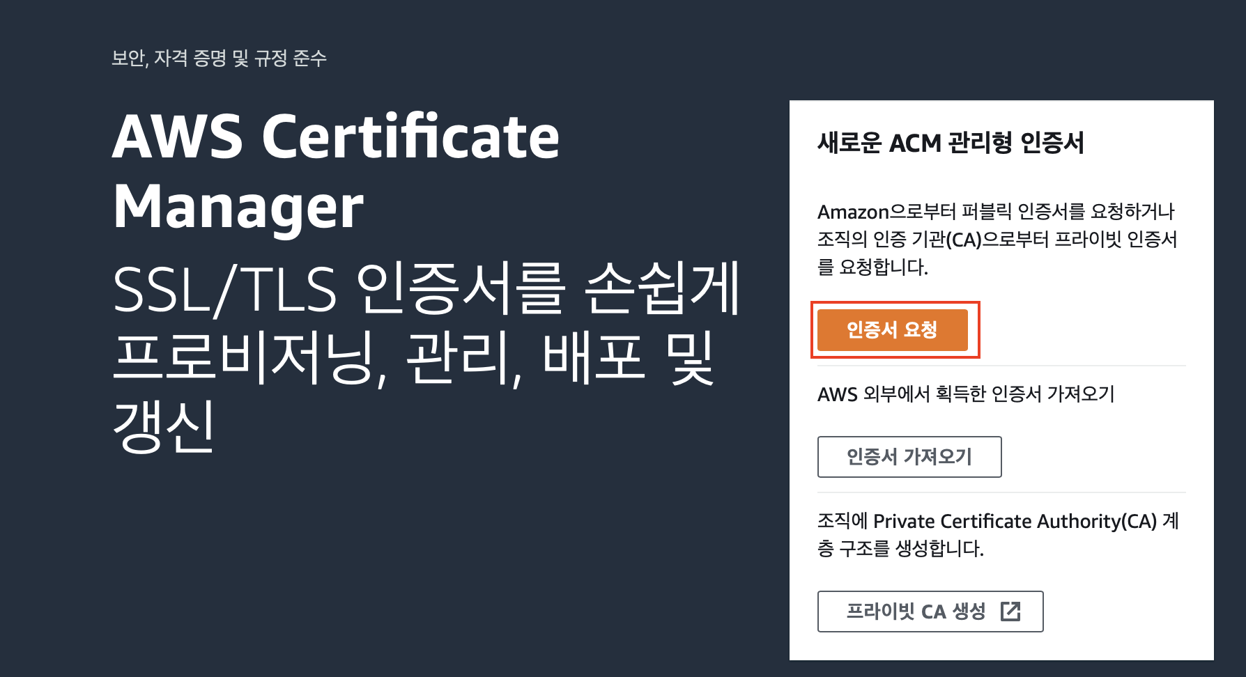 먼저 Certificate Manager 대시보드로 이동합니다.