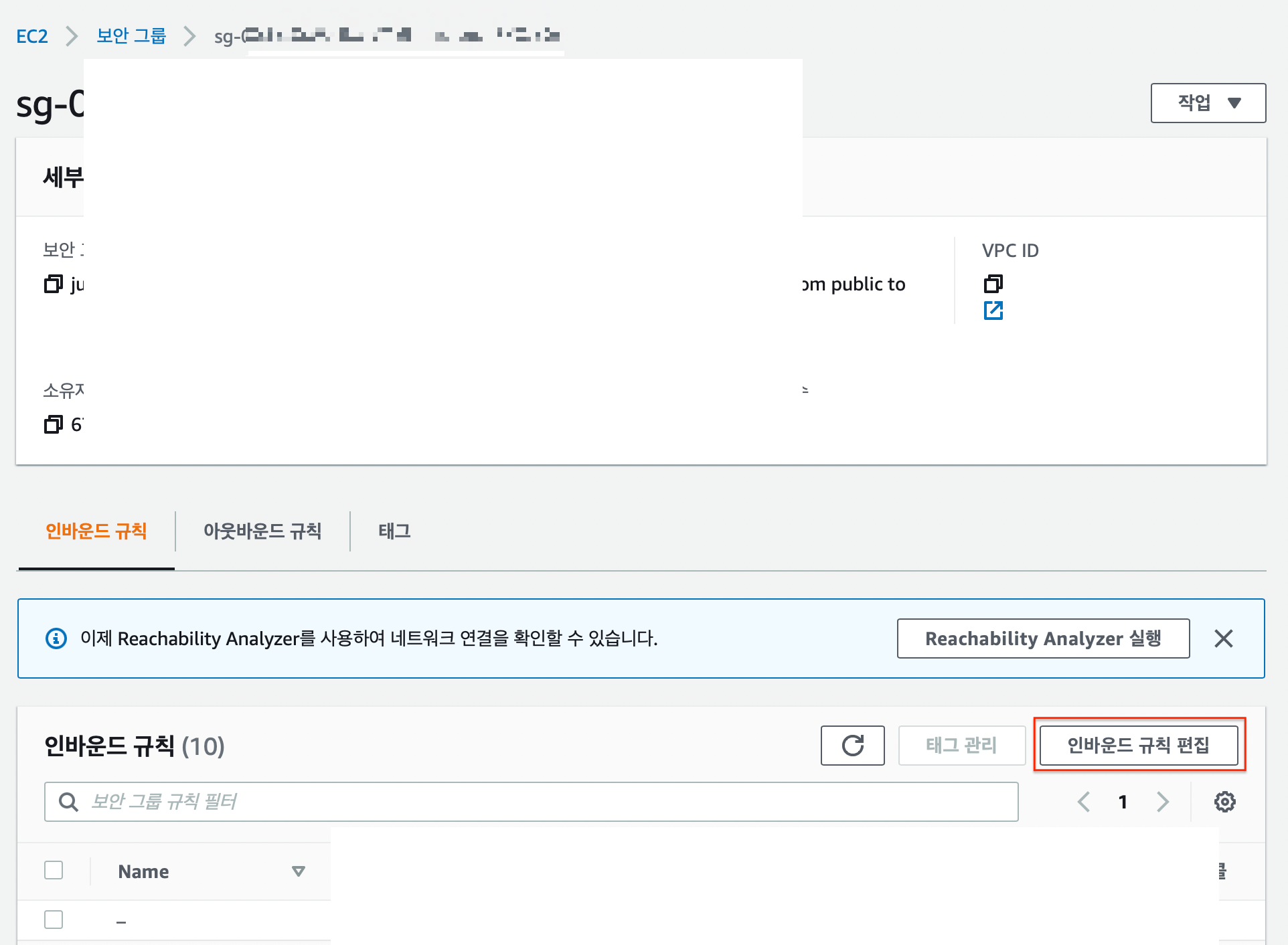 또한, EC2에서 사용하는 보안 그룹을 아래와 같이 수정해주셔야 합니다.