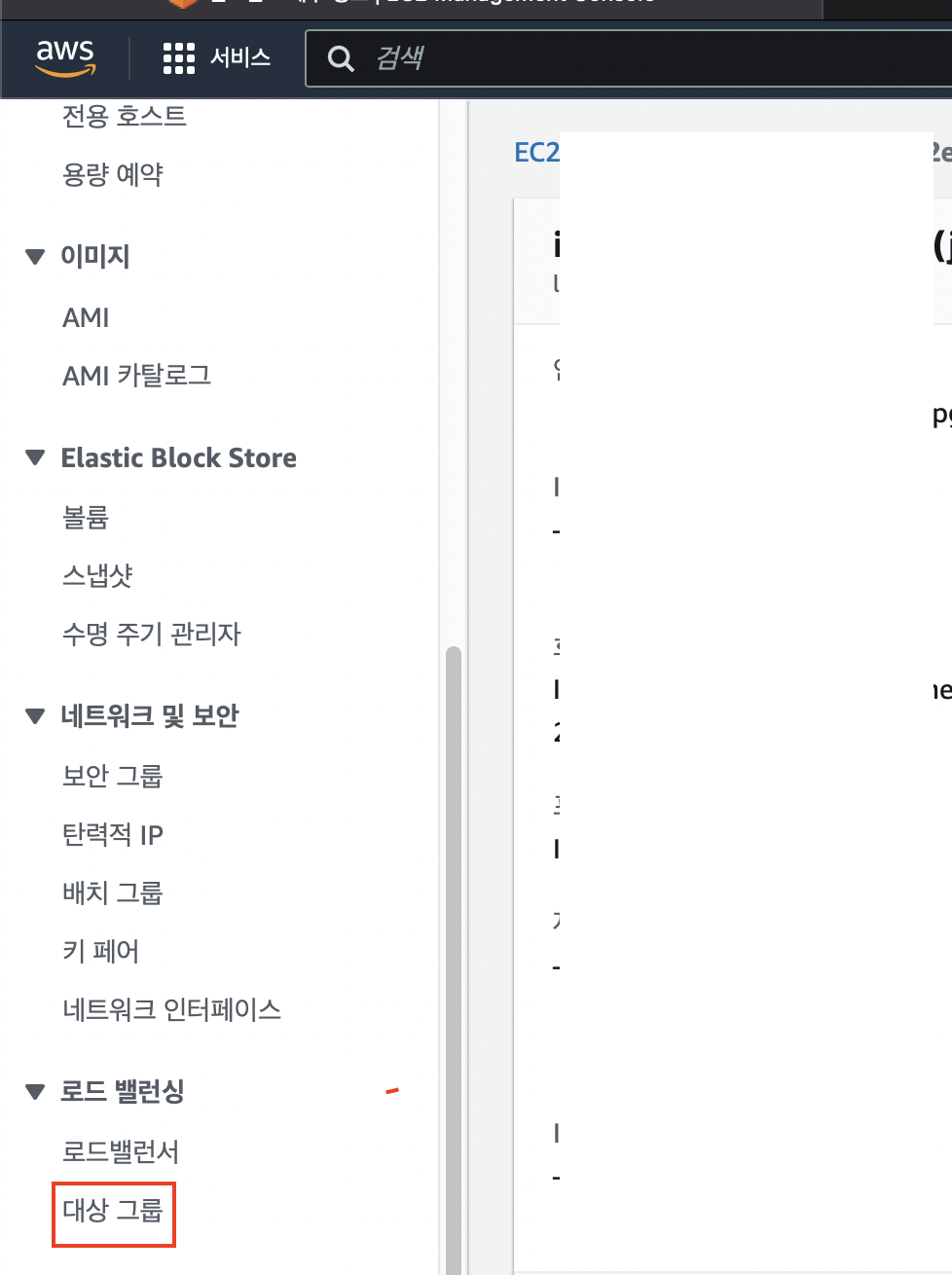 EC2 메뉴 하단에 대상 그룹이 있습니다. 클릭해줍니다.