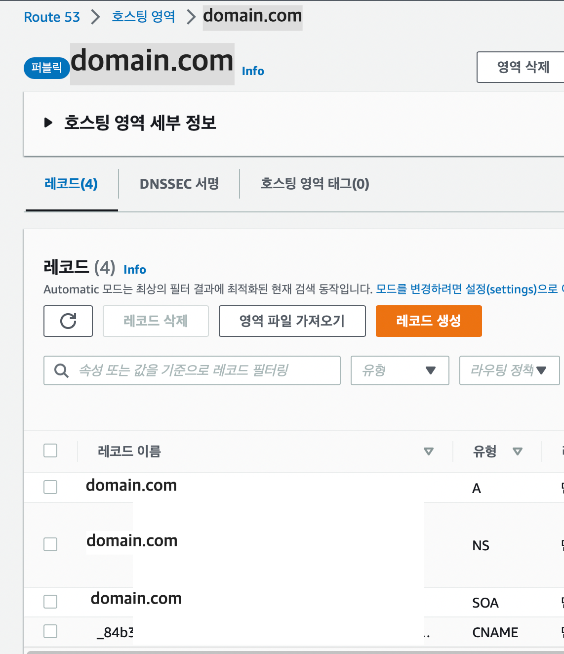 자, 이제 호스팅 영역의 레코드 4개가 다 생성되었습니다!