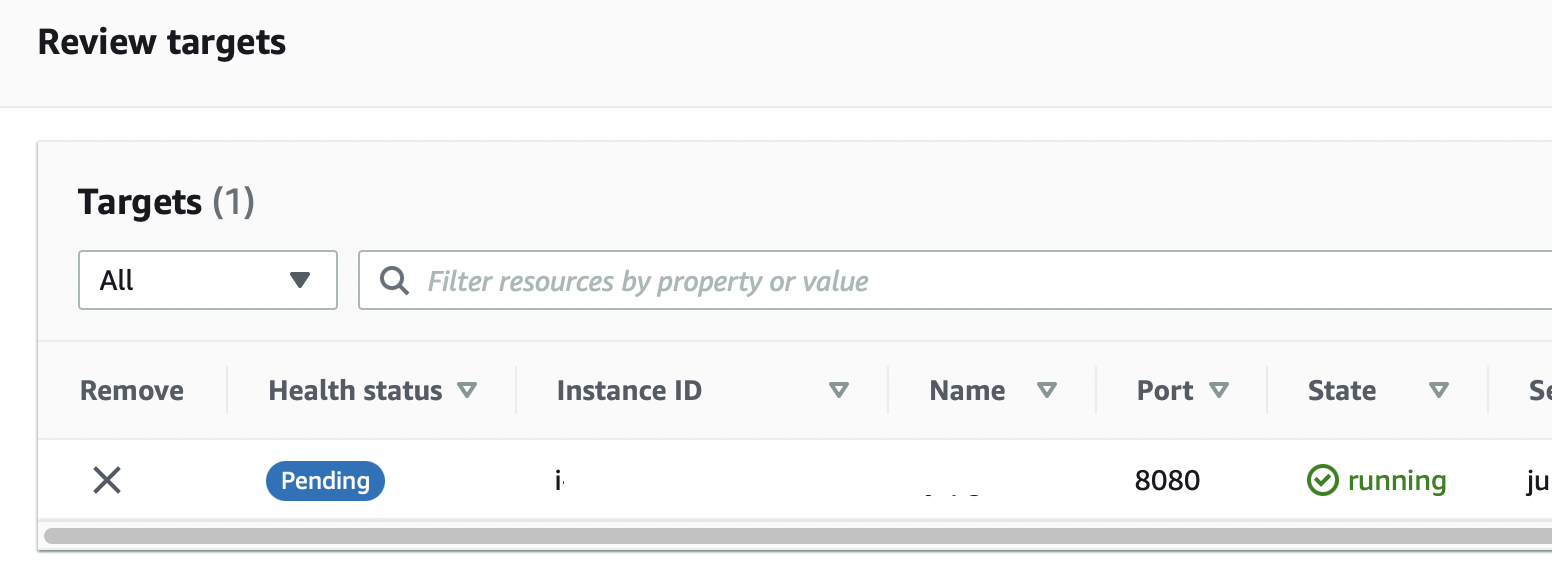 위처럼 타겟이 추가되었다면, 타겟 그룹 생성(Create target group)을 클릭합니다.