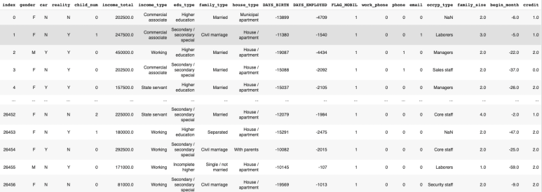 전처리된 데이터 셋(tmp_train)은 다음과 같다.