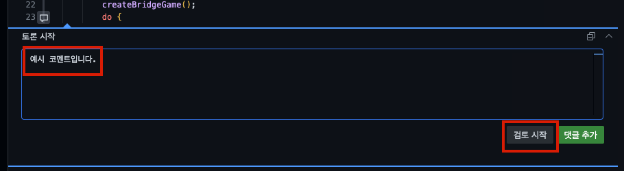 아무 코드나 클릭해 코멘트 작성 에디터를 열고,