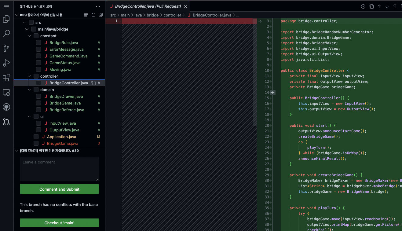 VS Code 인터페이스에서 작성한 리뷰를 확인할 수 있습니다.