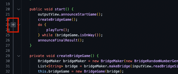 코드에 마우스를 가져다대면 나오는 + 버튼을 클릭합니다.