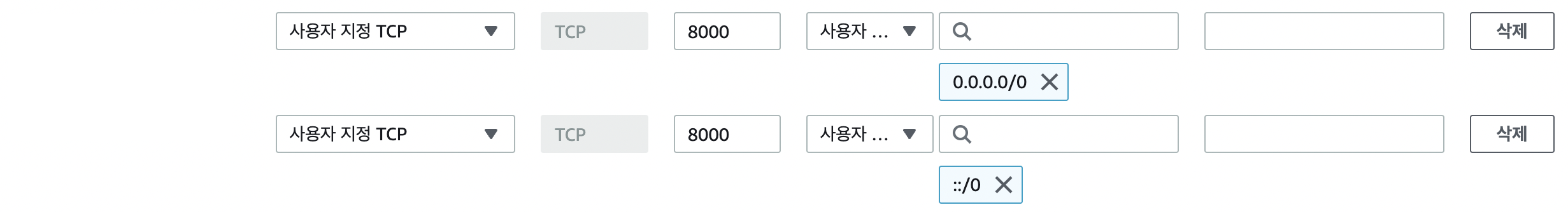 또한 우리가 사용할 8000번 포트에 대한 보안 설정을 미리 해놓자.