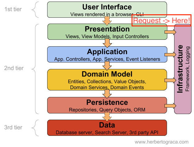 Layered architecture를 기준으로, Request의 위치는 Presentation layer입니다.
