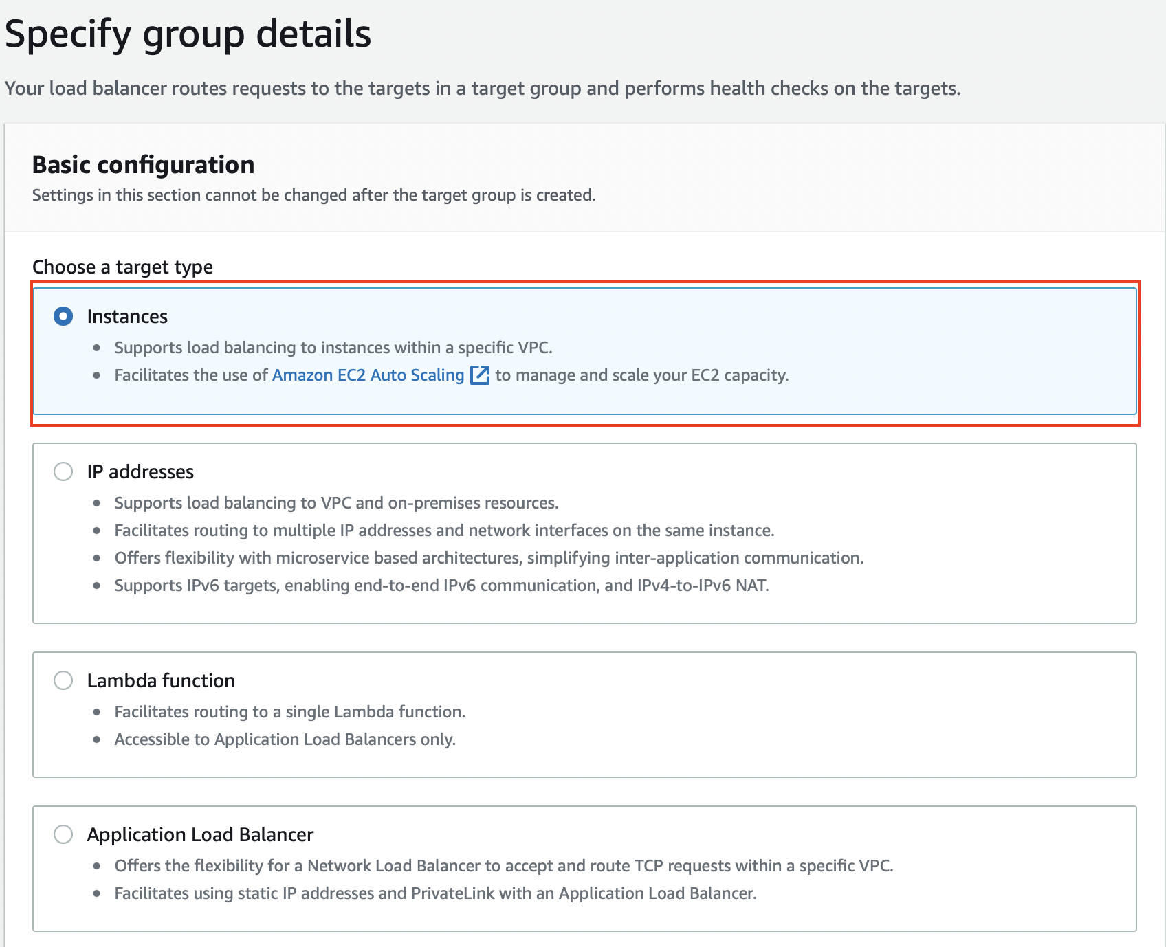 타겟 유형은 인스턴스를 선택하고,