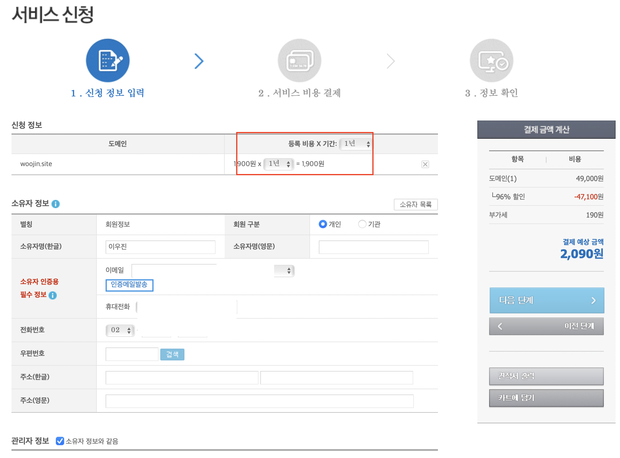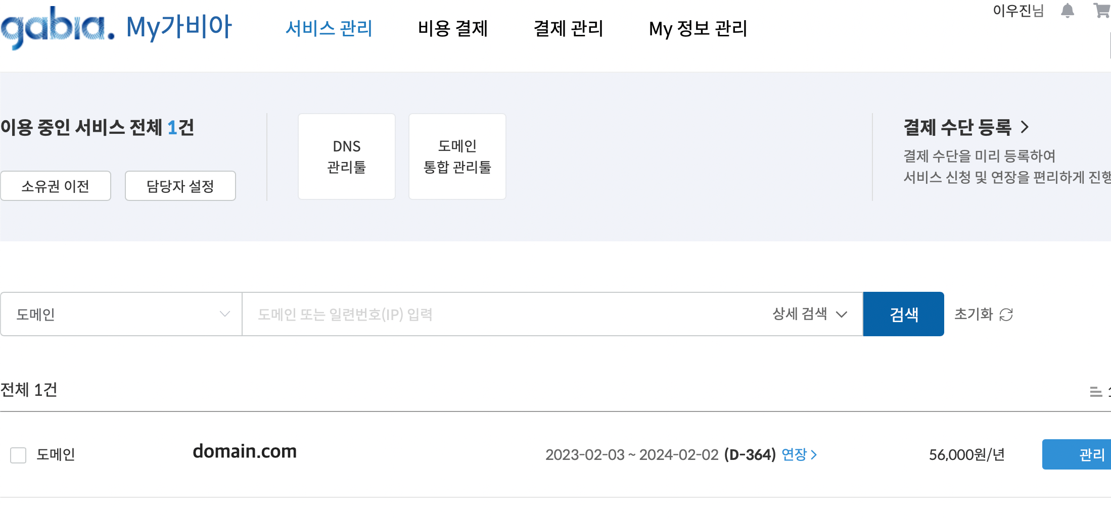 - 가비아에서 도메인을 구매