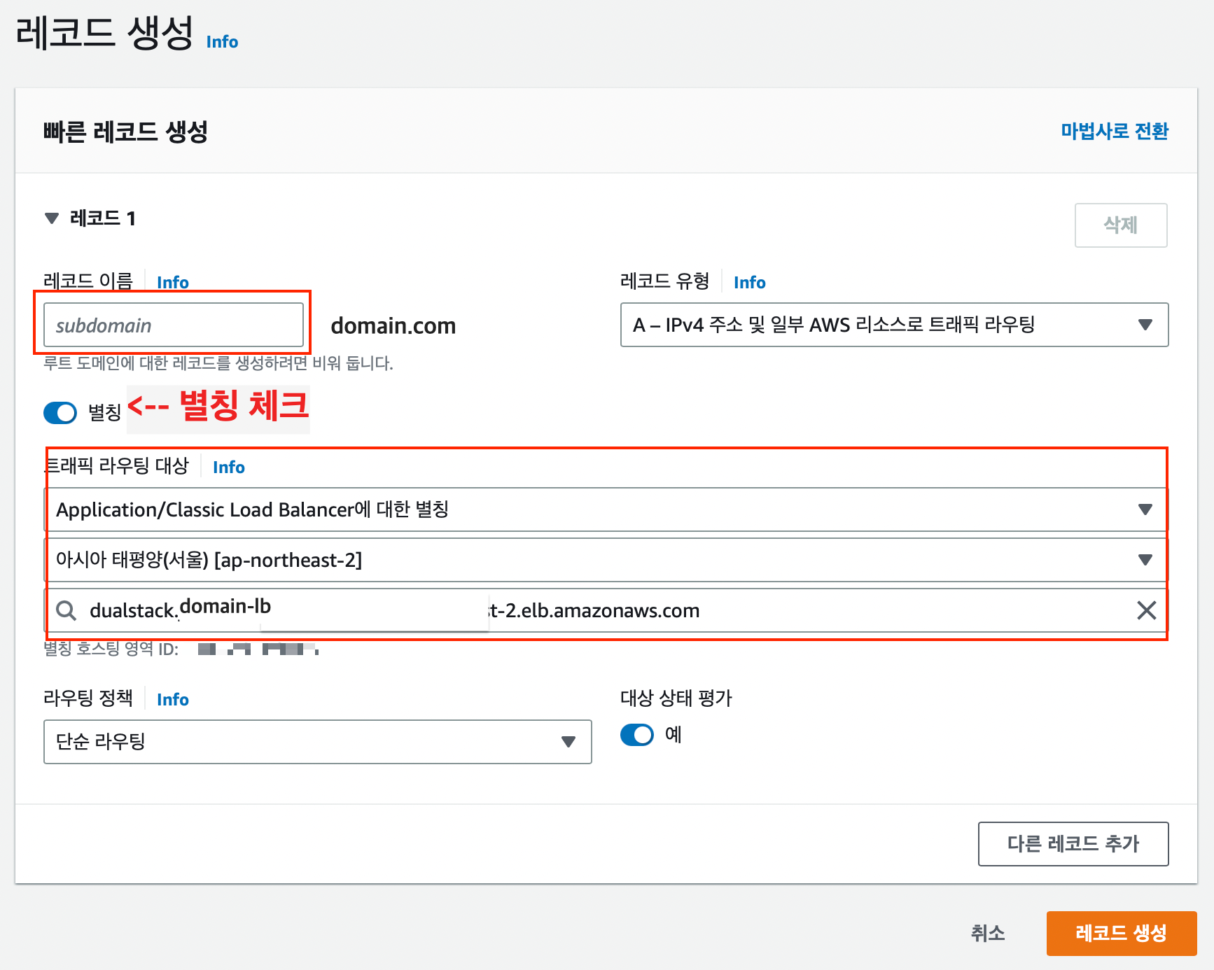 도메인 레코드 생성
