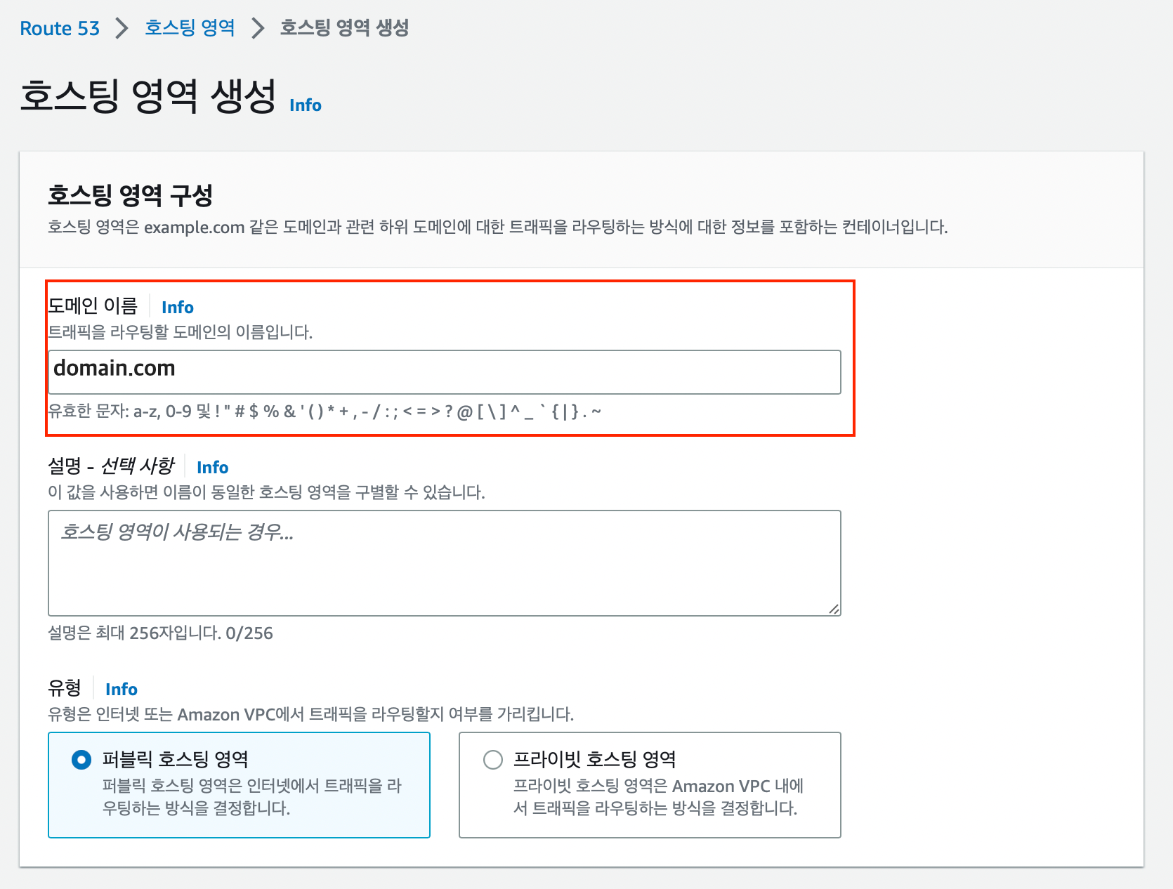 - 호스팅 영역을 생성