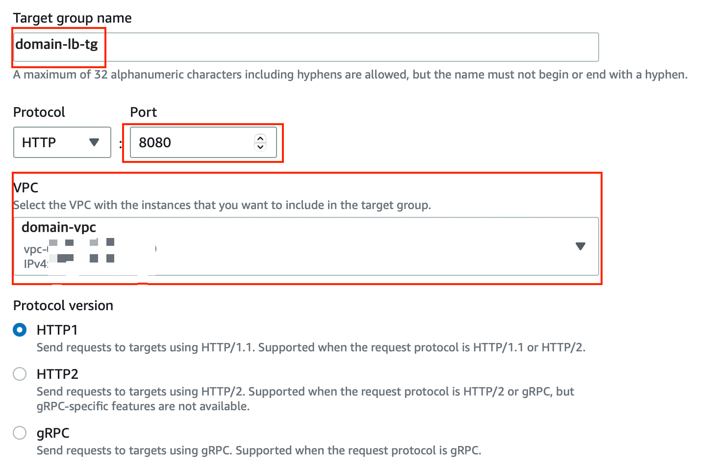 적당한 이름을 설정하고, 포트 번호를 바꿔주고, VPC를 EC2와 동일하게 설정합니다. (default VPC면 default 그대로)