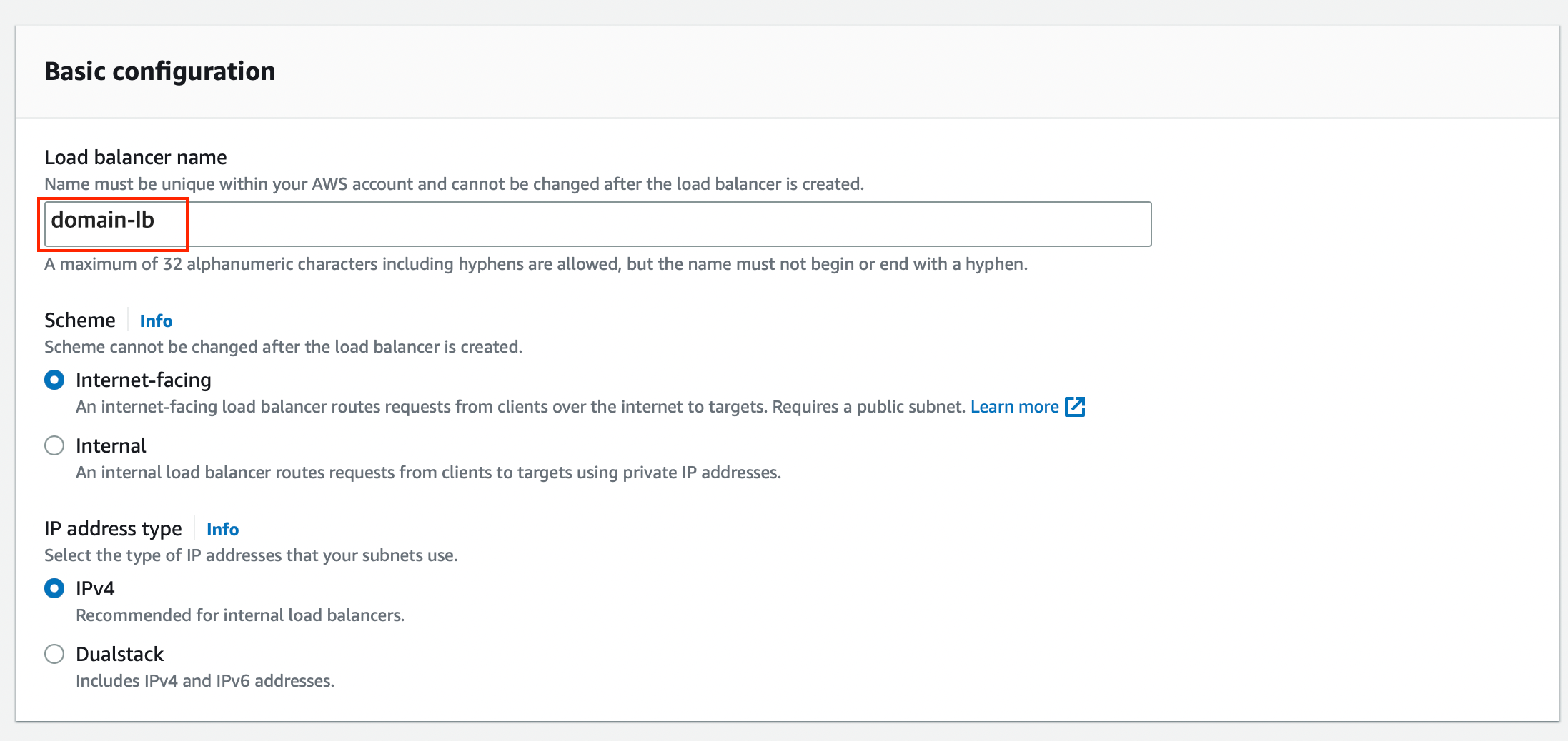 참고로 위에서 Scheme 설정을 Internet-facing으로 정했기에,