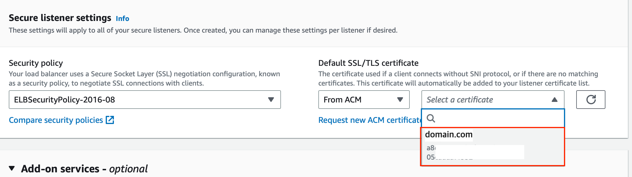 - 로드 밸런서를 만들어 https://domain.com의 443, http://domain.com의 8080번 포트에 대한 리스너를 추가