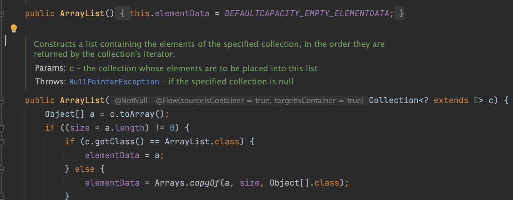 ArrayList 클래스 구현 코드를 살펴보면, 아무 인자가 없을 때 작동하는 생성자가 존재할 것이고,